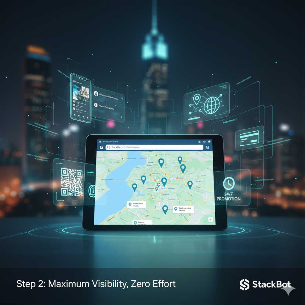 Sistema PIN Único: Recibirás tu PIN oficial de StackBot, que verifica tu negocio y te da una dirección específica y única para que cualquier persona te encuentre.